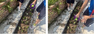 同学们拿着小喷壶,轻柔地为每一株草莓苗浇上定根水,晶莹的水珠在阳光下闪烁,仿佛也在为这些新生命的到来欢呼。