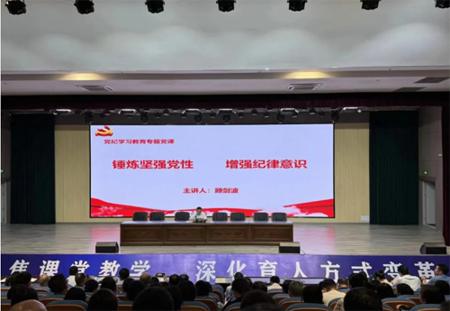四川省大邑中学党委书记顾剑波同志为全体党员上了题为《锤炼坚强党性,增强纪律意识》的专题党课。从党纪学习的重要性和意义,党纪学习什么、怎样学,如何落实等方面进行了讲解。他强调,党纪是党的生命线,是保持党的先进性和纯洁性的重要保障。对党员干部来说,纪律是“紧箍咒”,也是“安全带”。严明政治纪律,坚决做到“两个维护”;严明组织纪律,增强组织纪律性,严明廉洁纪律,守住拒腐防变防线;严明群众纪律,践行党的根本宗旨,严明工作纪律,促进担当作为;严明生活纪律,锤炼党员道德品行,每一位党员教师都要时刻牢记党纪党规,严守党的纪律底线,自觉维护党的形象。只有把纪律挺起来、立起来、严起来,才能始终保持党的先进性和纯洁性、确保党不变质不变色不变味,才能不断增强党的创造力凝聚力战斗力,确保党政治统一思想统一行动统一。
