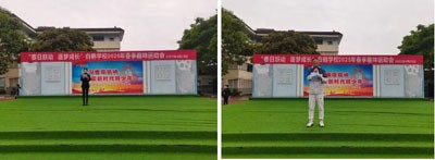 开幕表演结束后,校长杨国军致开幕词,他热情洋溢的讲话,传递着奋斗拼搏的讯息,激扬着同学们的斗志,鼓舞着我们奋勇向前。随后,教师代表发言,表达了对同学们的殷切希望;裁判员代表则承诺公正裁决,确保比赛顺利进行。最后,杨校长宣布邛崃市白鹤九年制学校春季趣味运动会开幕!