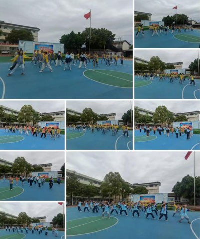 音乐响起,学生列队登场,马步冲拳刚健、弓步推掌有力,踢腿转身整齐划一,一招一式尽显少年精气神与班级凝聚力,掌声此起彼伏。