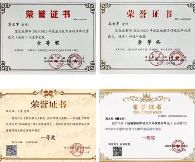 她深耕英语,持续精进,不断学习深造,努力提升自己的专业素养。积极参与课题研究,其撰写的多篇论文在成都市荣获一等奖。