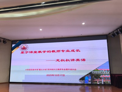 为进一步夯实教师专业素养,破解教学实践中的成长难题。2025年10月17日,大邑县实验中学特邀成都外国语学校英语学科名师、全国中小学英语课堂教学竞赛特等奖获得者龙瑾老师,开展以《基于教学的教师专业成长》为核心主题的“龙叔叔讲英语”专题培训活动。大邑县实验中学党总支副书记、校长宋仕平、执行校长王维荣、师培中心主任贾登位、全校英语教师及联盟校花水湾学校、悦来学校骨干教师参与培训,现场学习氛围浓厚。