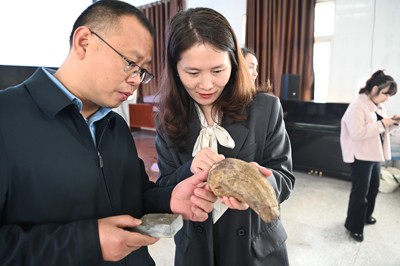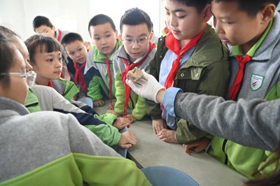 讲座现场,除了老师的生动科普,同学们还亲手触摸穿越亿年的古生物“之身”,让同学们在这堂难得穿越亿年的课堂上,探秘远古的神秘。