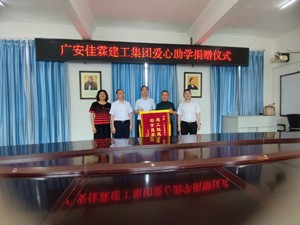 活动中,民盟盟员、广安佳霖建工集团邹佳霖现场为岳池顾县中学捐赠建设资金100000元,为10多名贫困学生捐赠爱心学金29500元。受资助学生代表发了言,感谢邹佳霖叔叔爱心捐助,我一定努力学习,做一名善良、品德高尚的人,长大后以实际行动回报社会的关爱和支持。岳池县顾县中学负责人向四川省广安佳霖建工集团赠送了“建工翘楚行善举,助学显爱惟德馨”的锦旗。
