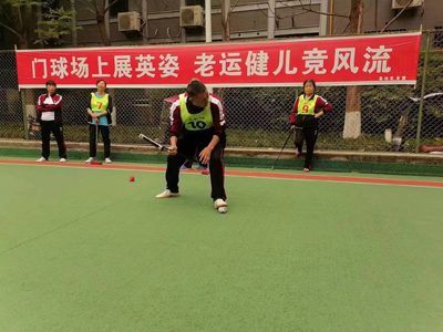 门球协会80多名会员组成十四个队参加了此次比赛。年龄偏大的和刚参加门协的会员,或为赛事服务,或为队友们加油助威。在赛场上,选手们个个精神饱满、斗志昂扬、挥杆对垒、弯腰击球、沉着应对,以灵巧、娴熟、稳健的击球技术在球场上激烈角逐。