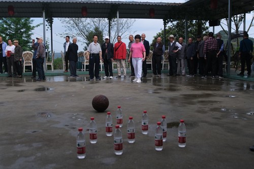 保龄篮球比赛则是一场速度与力量的较量。老同志用力将篮球滚向矿泉水瓶,水瓶倒下的瞬间,仿佛也带走了他们身上的疲惫和岁月的沉重。