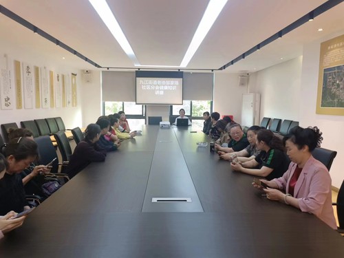 九江社区卫生服务中心医生刘梦迪向老协会员朋友们讲了吸烟的危害、戒烟的好处、如何戒烟以及加强体育锻炼,增强免疫力等健康知识。老协志愿者还发放各类健康知识宣传资料40余份。据统计,讲座前健康知识知晓率70%,讲座后健康知识知晓率93.3%,满意度100%。