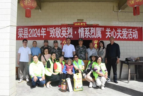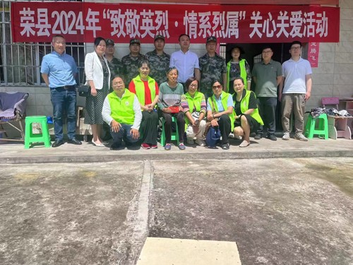 4月19日,太阳高挂在空中,骄阳似火。这天,荣县退役军人事务局携手荣县退役军人志愿服务队、荣县义工联合会,开展了2024年“致敬英烈、情系烈属”关心关爱烈士遗属、英烈精神进校园等活动。