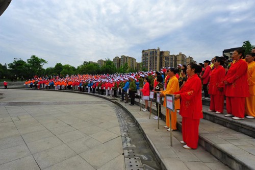 接着,绿道健身徒步走活动文体项目表演展示开始,东升街道老体协、太极拳协会、区老年大学、广场姐妹舞蹈队进行了健身腰鼓、太极拳四十二式、健身球操、广场舞的展示。精彩的表演充分体现了双流老年人昂扬奋进、积极向上的良好精神面貌,获得现场观众的阵阵掌声。
