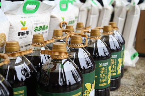 上午10时许,一辆运送慰问物资的小货车缓缓驶入镇政府大院后,“科施福”党支部的党员及管理员便冒雨卸载大米和菜籽油,小雨淋湿了他们的头发和衣服,但他们依然带着微笑。