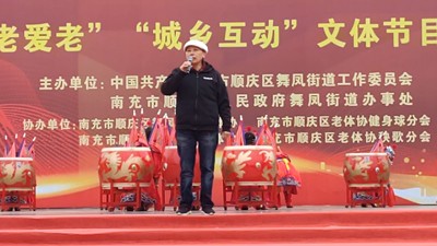 展演前,南充市老体协常务副主席邓国秀激情致辞,代表南充市老体协蔡勇主席看望大家。她肯定地说,顺庆区老体协的工作多年来名列全市前茅,有的工作走在全省的前列,是我们全市老体协的一面旗帜。顺庆区健身秧歌去年获得全国唯一“最佳创新奖”,健身球操去年获得全国第一名。顺庆区老体协“城乡互动以城带乡”活动在全市是创新,并且卓有成效,敬老月演出10多场,观看群众2万多人,组织的节目深受广大城乡老年朋友的关注和喜爱。舞凤街道以敬老爱老庆祝新中国成立为载体,把老年人最美的风采和动听的歌声送给广大市民朋友,值得学习和推广。在此,向顺庆区老体协、舞凤街道党工委办事处、李家镇和全体演职人员表示衷心的感谢。