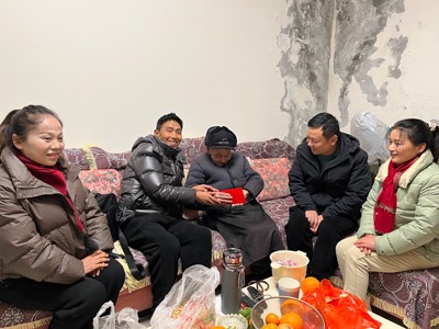 12月24日上午,成都市双流区黄甲街道老年人协会会长付仕水同志率班子成员刘国琼、蔡蓉和王家场社区老协分会会长罗元波、冯素英一道,带着党工委、办事处的心意和街道老协的深情厚谊来到胡启树老寿星家向这位百岁老人表示热烈的祝贺,并送上慰问金。我们的到来,受到了其家人的欢迎,老人家特别高兴,他说:“没有想到我满100岁时你们街道的老年协会来看望我,真是太感谢了,我好幸福啊!谢谢!谢谢!”随后,我们陪同老寿星聊天,问了他的长寿秘绝,他表示,主要是得益于从小常年参加体力劳动,生活有规律,不喝酒、少量吸土烟,最主要的还是得益于儿孙孝顺,对我各方面无微不至的关怀,晚辈们不嫌不弃,所以我才长寿。