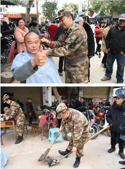 活动间歇期间,马勇、唐雪真、傅钰娟、范长青等10多名队员,又在“闹市区域”开始了义剪。“我本来还可以等几天理发,但看到你们这些‘战友’在义务理发,我一定要理一次,回味50多年前在部队时战友相互理发的情景!”70岁的老兵一边拿出退役军人优待证一边激动地说。“你们为大家义务理发做好事,我给你们点个大大的赞!”一位群众一边理发一边翘起大拇指夸队员。当日,为10多名群众义务理发。