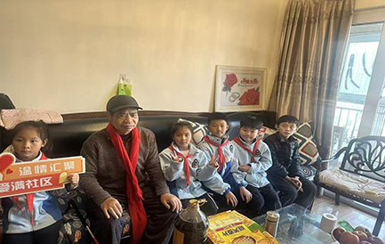 慰问当天,孩子们带上精心准备的物资,在老师与家长的陪同下,分组走进社区高龄空巢独居老人家中。孩子们把义卖的零钱换成温暖,敲开了爷爷奶奶的家门,这不是一次简单的“送礼”,这是一次爱与陪伴的传递。那一刻,隔代的温暖紧紧相连——少年之力,虽小却暖;敬老之心,虽稚却真。孩子们围在老人身边,认真倾听老人讲述过去的故事,有的用稚嫩的声音送上祝福,欢声笑语填满了原本安静的屋子。脸上都洋溢着欣慰的笑容,老人眼中满是感动。