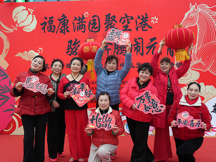 为弘扬中华优秀传统文化,丰富辖区老年居民精神文化生活,营造喜庆祥和的元宵佳节氛围,2026年2月28日上午,西航港街道老年人协会协同西航港街道在综合为老服务中心广场隆重举办"福康满园聚空港骏马奔腾闹元宵"主题游园活动,辖区老年朋友欢聚一堂,载歌载舞,品汤圆,玩游戏,猜灯谜,共度温馨喜庆的元宵佳节。