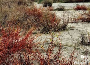 随着秋意的越发浓稠和冬寒气的到来,似乎在一夜之间,那散落于河滩沙壤上的水蓼草,一下由原来的青绿而变成了火焰般的艳红,给整个充斥着萧瑟气氛的漠野滩涂,平添了几分浓浓的暖意,让人感到了丝丝无限的欣慰。