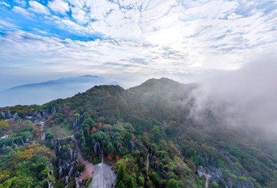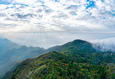 初冬时节,四川省广安市华蓥山云雾缭绕、色彩斑斓,怡人的自然景致,宛如人间仙境,吸引不少游人前往赏景拍照,尽情感受大自然的壮美。