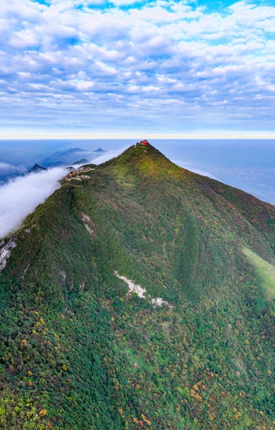 2024年11月10日,色彩斑斓的四川省广安市华蓥山在蓝天白云映衬下,宛如人间仙境。