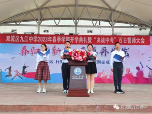 为了明确我校新学期的奋斗目标,激励全体师生振奋精神、锐意进取,营造浓厚的开学气氛,为新学期创造一个良好的开端。双流区九江初中全体师生于2023年2月27日上午,举行了2023年春季学期开学典礼暨“决战中考”百日誓师大会。