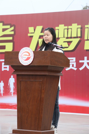 高三学子在父母的爱和守望中成长,点滴的爱化为不竭的学习动力,无尽的守望成为学生风雨兼程的明灯。家长代表李江艳女士鼓励高三学子埋首苦干,戒骄戒躁,刻苦上进,超越自我。李女士发自肺腑的叮嘱和期望传达了高三学生家长的共同心声,令在场学生备受鼓舞。