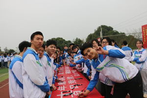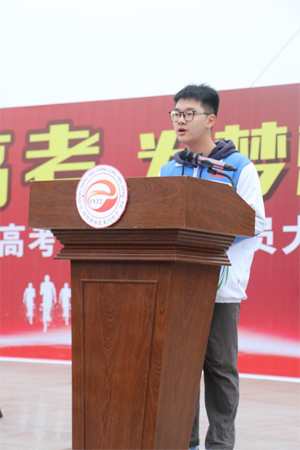 高三教师代表李秋婷老师在这决战前的关键时刻希望同学们要端正心态,戒骄戒躁;脚踏实地,筑牢基础;坚持不懈,全力冲刺。终有一日同风起,扶摇直上九万里。李老师代表全体高三教师表示,将与同学们并肩作战,共创辉煌。