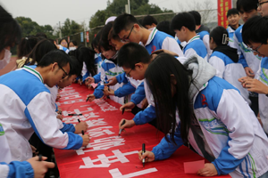 随后,为了表达高2023届全体师生的决心,全体高三老师在李秋婷老师的带领下,各班在领誓人的带领下喊响了百日冲刺誓词,嘹亮激越的呐喊,庄严凝重的神情感染了会场的每一个人,经久不息的宣誓词响彻会场。