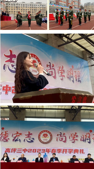 操场上,旗台前,高坪三中全体师生齐聚一堂,怀着崇高的敬意高唱国歌。2023年春季学期开学典礼在这庄严的国歌声中拉开了序幕。典礼由团支部书记汤琴主持。