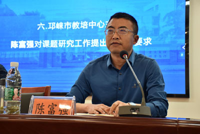 大会伊始,邛崃市教培中心主任陈富强宣读成都市课题立项通知,并对课题研究提出希望和要求。