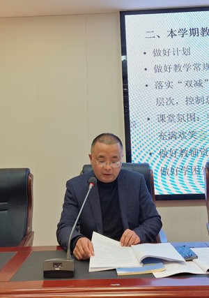 教导处曾义军主任就本学期教学工作要点、教学过程中的安全管理、课程计划以及创建“书香校园”等方面做出了具体安排。他尤其强调:教师要精心准备每一堂课,通过多种方式将课堂的“生动、有趣”落到实处,创建高效课堂,才能真正实现“减负提质”。