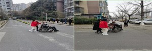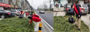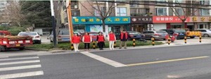 4.全体党员同志在公园路社区参加志愿者活动,同志们主动在绿化带捡拾垃圾,路边指引行人文明出行,帮助残疾人过街。
