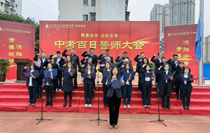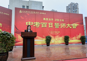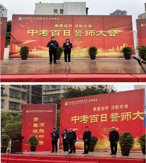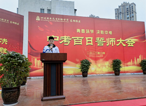 最后,他祝愿同学们带着浪遏飞舟的勇气、力挫群雄的锐气、舍我其谁的霸气、金榜题名的豪气,以必胜的信心、顽强的毅力、良好的状态、科学的方法拼搏一百天,决胜中考,创造辉煌!