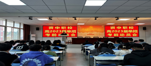 2023年3月23日,资中县职业技术学校在学校召开了2023年高职单招考前动员会,学校校级领导、高职单招领队、高三单招学生参加了本次会议。会议由教科室主持,分领队会和学生会两部分。