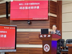 再后,南充一中初中部教研组长邱志强评课,他对鞠老师的课堂进行了高度肯定,他指出本堂课复习目标明确、过程得当、方法独特、效果明显,同时他也对鞠老师提出了增大课堂容量、提高思维含量的中肯建议。