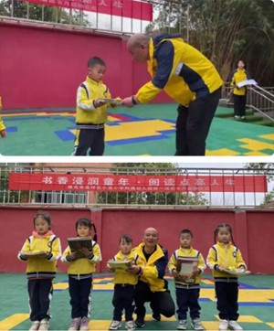 最后,园长青伟进行了赠书仪式,希望小朋友们接过手里的书,可以徜徉在书籍的海洋里。