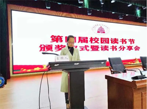 学校团委书记代蓉梅主持活动并宣读了在“好书推荐”比赛、“书香人生”主题征文比赛、“最美阅读者”评选及“书香人生”读书分享会主题班会评比活动中获奖的个人与班级名单。在大家热烈的掌声中,与会领导为获奖个人与班级颁奖并合影留念。