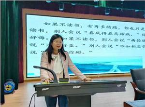 教师代表谢晓婷列举了读书与不读书的差别,表示读书不一定能功成名就、锦绣前程,但它能让你说话有德,做事有余,出言有尺,嬉闹有度,希望大家在书香文墨中汲取力量,坚定前行。