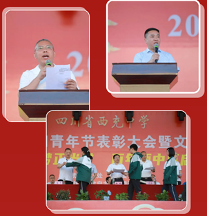 学校党委书记、校长杨明老师致辞。他首先代表学校党委、行政向青年朋友们致以节日的问候,向获奖的班级、个人以及新团员表示热烈的祝贺。他回顾了五四运动的光辉历史,介绍了我校建校100年来,一代又一代西中青年传承五四精神,满怀报国之志,在祖国建设和民族复兴的伟大征程中播洒青春、建功立业,成长为能影响中国未来的西中人的荣光。同时,他号召全校青年学生,要秉承激情澎湃的时代风范,无愧于这个伟大的时代! 要以执著的信念、优良的品德、丰富的知识、过硬的本领,勇敢地担负起历史重任!最后,大会主持人文志勇老师指出,五四的硝烟已散,但五四的薪火永传,希望大家在五四精神的感召下,追随文明、智慧的脚步,开启砥砺奋进,扬帆起航的新征程。