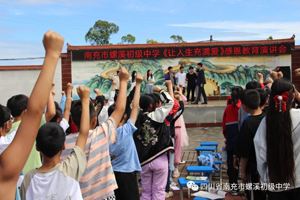 最后,在黄老师的引导下,孩子们凝神着五星红旗,高举右手,高声吟诵《少年中国说》,“少年强则国强,少年富少国富……”这声音在螺溪初中的上空久久回荡,这声音,抒发着孩子们对祖国的无限热爱。