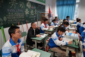 2023年5月10日上午,大邑县教育局教研室主任王成率领县教教研室全体成员来到大邑县实验中学,就义务教育初中段2022—2023学年度年下期“双减”工作进行专项视导。