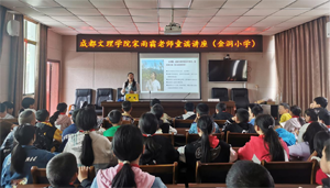“同学们,你们读过或者会唱哪些童谣......”2023年5月16日下午3点半,一场主题为“谣望童年葆童心——童谣鉴赏与创作”的讲座在重庆市黔江区金洞小学举行,该校70余名小学生和教师代表参加了讲座。主讲人宋雨霜来自成都文理学院,讲座由陈波校长主持。