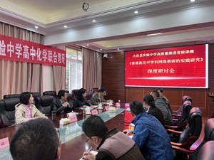 为高质量推进省级科研课题《普通高完中学科网络教研的实践研究》的深度研究,提升学科教师的研究能力,以促进学校“双新”实施落地落实。4月7日下午,大邑县实验中学特邀四川省教育科学研究院化学教研员马红艳老师、武侯区化学教研员彭明良老师、国家级“双新”实施示范校四川大学附属中学的部分化学老师、大邑县教育局化学教研员杨懿老师到校指导,并开展联合教研,深入交流研讨“双新”实施工作。学校高中化学组全体老师开展。学校党总支书记李华清、副校长赵焱参加了此次研讨会。会议由高中化学教研组长刘雄主持。