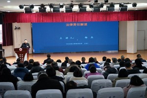 依法治校,依法执教是学校重点工作之一。学校特邀简言律师事务所主任、学校法律顾问杨杰律师向全体干部教师开展法制培训。老师们认真聆听,法制意识进一步提升。