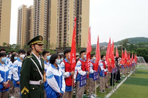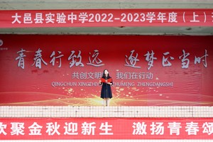新生到位,在庄严的国歌声中,鲜艳五星红旗冉冉升起,以“青春行致远,逐梦正当时”为主题的大邑县实验中学2022年秋季学期开学典礼正式拉开序幕。