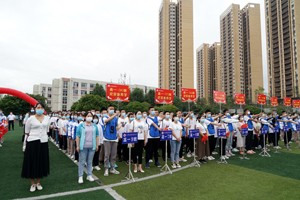 青年不惧未来长,彼方尚有荣光在。高三、初三学子们将在不久的将来,迎来人生重要的考试,为了给同学们加油助威,鼓舞士气,党支部书记李华清,校长张家智为高三、初三年级授必胜旗。飞扬的战旗,让高初三年级的同学们心潮澎湃,斗志昂扬,表示将不负青春,奋勇前行。