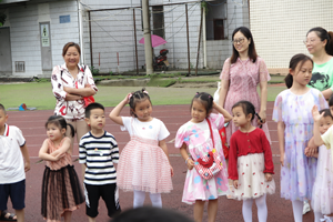 最考验大朋友的引导和小朋友的信任与协作的,无疑在“桃花朵朵开”的问答、组合场。首先圈儿要围得又大又圆,当然,回答“开几朵”时,若能又快又准地回复所报数字,还能不多不少地组合,那肯定是全场最帅气的仔!