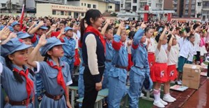 在庄严的大队旗下,全体队员高举右拳,庄严宣誓,童稚的声音掩盖不住内心的激动,紧握的拳头是郑重的承诺,铮铮誓言代表了队员们时刻准备为共产主义事业奋斗的决心。