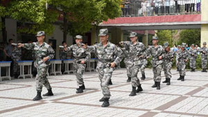 “劈枪”最能够凸显压倒一切敌人的霸气,活动现场,电子工业学校国旗班的学员为同学们表演现场版格斗刺杀,突刺、马步横击、侧踹斜劈、下劈上挑,一令一动锤炼扎实作风,一招一式尽显军人本色,同学们看得过瘾、入迷,心潮澎湃。