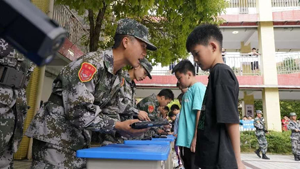 仿真T91突击步枪,92式手枪一亮相,引起了同学们浓厚的兴趣,学员们细致讲解了手枪、步枪的构造、使用方法,并手把手教导同学们如何拆卸,安装枪械。沉浸式体验让同学们热血沸腾,国防教育在他们心中已生根发芽。