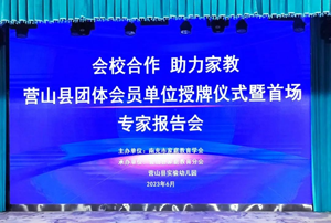 为深入贯彻落实习近平总书记关于家庭教育的系列讲话精神和教育部《关于加强家庭教育工作的指导意见》,认真学习、宣传、落实《家庭教育促进法》,探索家庭、学校、社会相结合的家庭教育新模式,深入学校开展家庭教育相关培训,提升家长、教师的家庭教育素养,促进家庭教育规范化与科学化。2023年6月9日上午,由南充市家庭教育学会主办,营山县家庭教育分会、营山县实验幼儿园承办的“会校合作 助力家教”——营山县团体会员单位授牌仪式暨首场专家报告会的活动在营山县实验幼儿园北城园区举行。