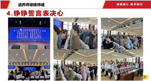 通过“叩问师魂”警示教育、未保法等法律法规学习以及师德师风专题教育,进一步严明了师德,筑牢了信仰之基,绷紧了纪律之弦;通过分组大讨论,大家充分认识到自己在学校大家庭中的重要角色、在学校发展中的艰巨使命,纷纷表示学校兴盛,教师有责,要以“四有”好老师的标准来教书育人,重塑形象,再续白中辉煌。